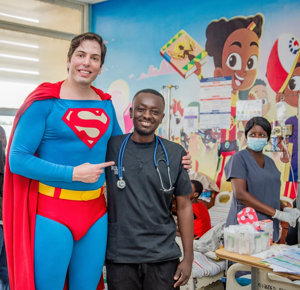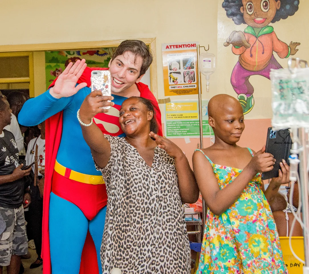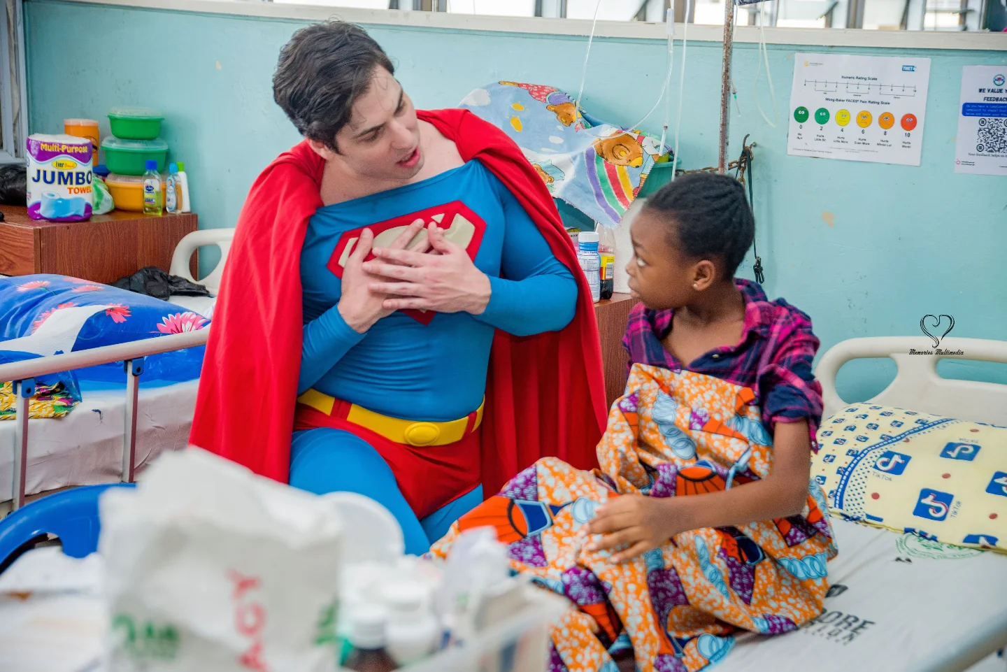 Leonardo Muylaert, globally known as the Brazilian Superman, a 7-foot-tall lawyer and humanitarian who travels the world spreading kindness chose Ghana as part of his mission to bring joy to vulnerable communities. His presence brought comfort, renewed strength, and healing energy to the ward.